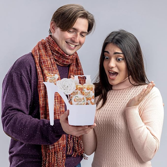 Draizee Mothers Day Gifts for Mom - Spa Gift Baskets for Women - 8 Pcs Luxury Citrus Scented Heel Shoe Design Bath and Body Spa Set - Self Care Package for Women, Present for Mom-Body Care Set for Her