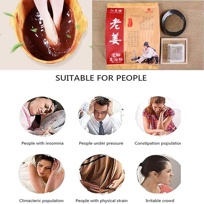 - There are 100pcs(5g per bag) ginger foot bath bag in a packet, suggest 2-3 bags each time.