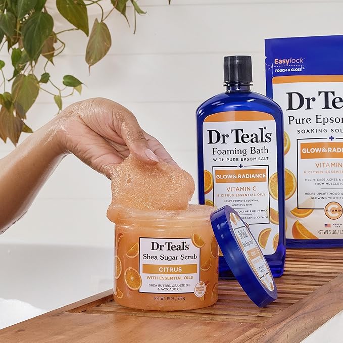 - HOW TO USE: Massage Dr Teal's Shea Sugar Body Scrub into wet skin in circular motions, focusing on rough, dry areas. Rinse thoroughly. Also try as a hand scrub!