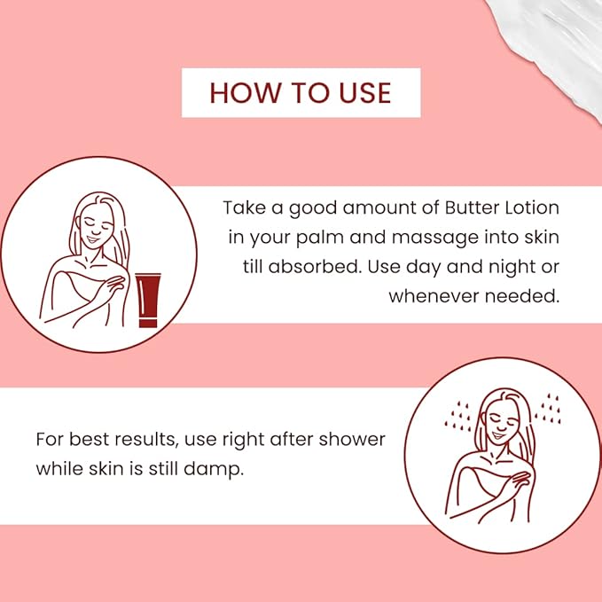 - How to Use: Take a good amount of Butter lotion in your palm. Massage lotion into skin in circular motions