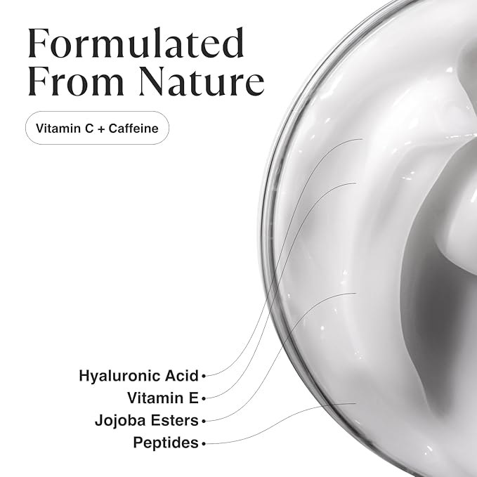 - BRIGHTEN DARK CIRCLES: Our Vitamin C Caffeine brightening Eye Cream is infused with antioxidant Vitamin C to defend skin from everyday stress. It joins Hyaluronic Acid for a hydrating dark circles under eye treatment that plumps and firms, for bright tight under eyes.