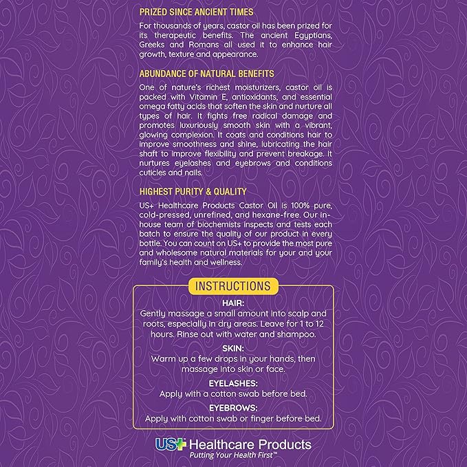 • Our high-quality dark amber PET plastic bottles preserve the castor oil's natural properties and enhance stability by blocking out light.