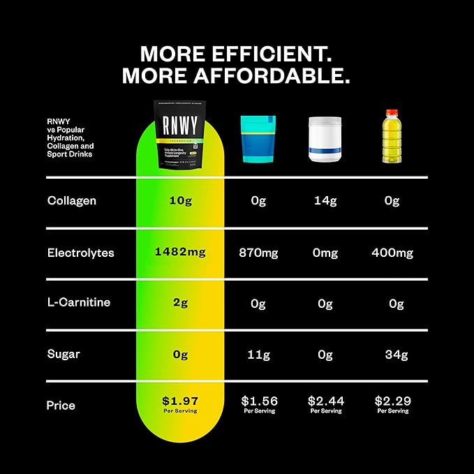 RNWY Foundation 10g Collagen Peptides + Hydration Powder, Daily Joint Support with Electrolytes, Lemon Lime, Sugar Free, 30 Servings