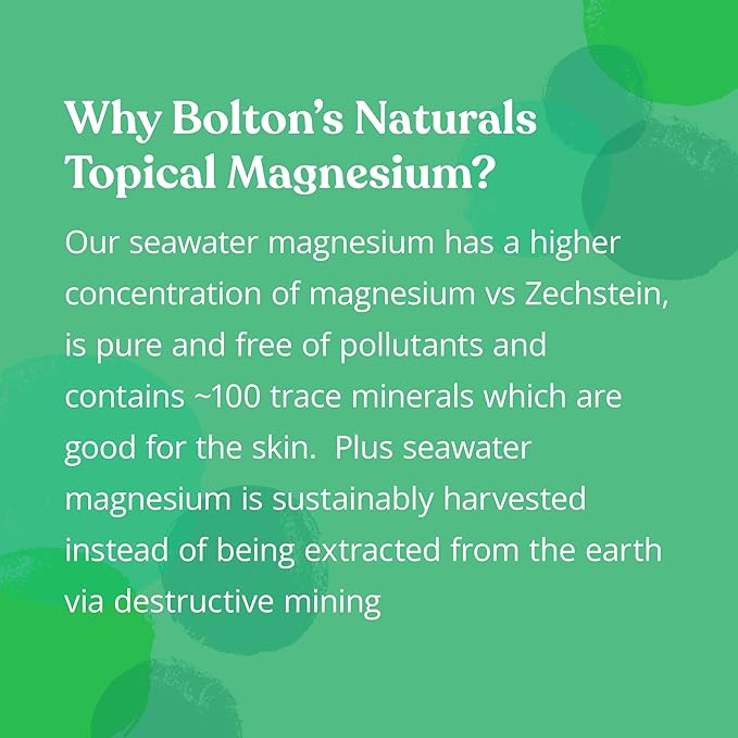- EASY TO USE: Bolton's Naturals magneisum chloride balm is applied directly on the skin . Apply the desired amount and massage thoroughly and smooth into areas of tension to seal in moisture on the body or face. Try massaging it into your feet, your muscles, your back, your neck, or anywhere you have tension.