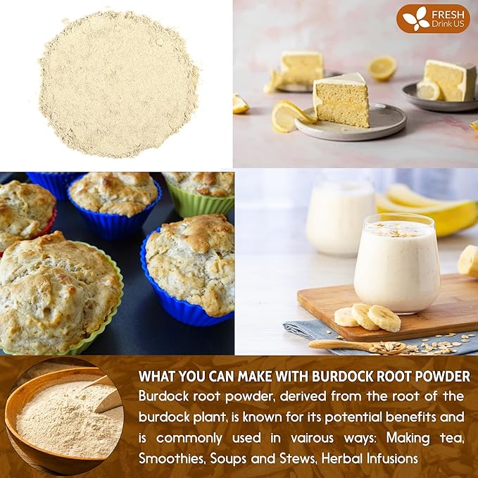 - ☘️ VARIOUS CULINARY APPLICATIONS: Burdock root powder could be added it to soups, smoothies stews, stir-fries, or other dishes for an extra nutritional boost. It has a slightly sweet and earthy flavor.