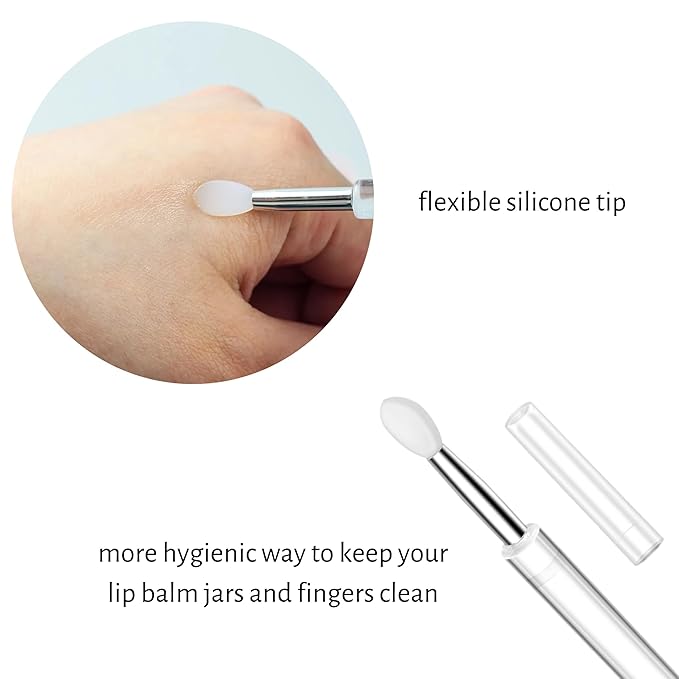 - Includes a bonus silicone lip brush with cover. Keep your lip balms clean by using a hygienic application brush. Silicone tip is easy to clean with soap and water.