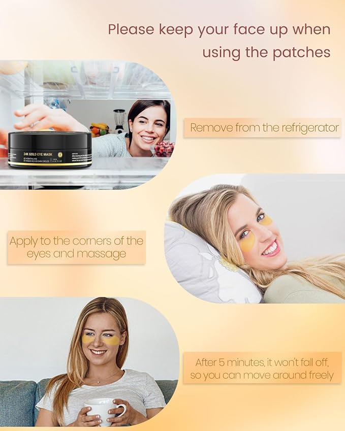 120 Pcs 24K Gold Eye Patches,Collagen Under Eye Mask for Puffy Eyes & Dark Circles, Combat Fine Lines and Wrinkles,Non-Irritating Under Eye Patches