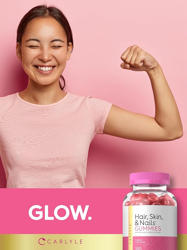 Carlyle Hair, Skin and Nails Gummies | 180 Count | Fruit Flavor Gummy Vitamins | with Biotin | Non-GMO, Gluten Free