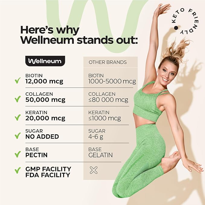 - Holistic Skin and Nails Support: our Biotin Gummies contribute to a beautiful skin, maintaining optimal hydration and oil balance; Keratin and Collagen support flexibility and strengthen nails.