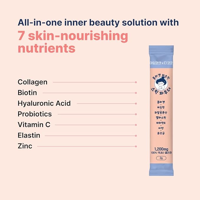IMCOKE Collagen Powder with Biotin, Ultra-Low Molecular Weight, Supports Skin, Hair & Nails, Made in Korea, 30 Sticks