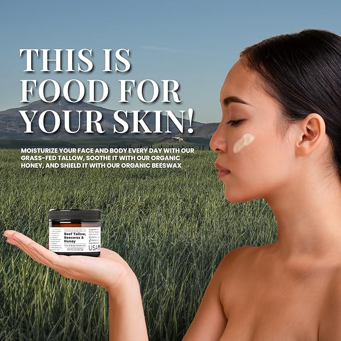 - SIMPLE, CLEAN INGREDIENTS: Crafted with only three ingredients, grass fed beef tallow, organic beeswax, and organic honey, for a minimalist skincare approach without unnecessary additives.