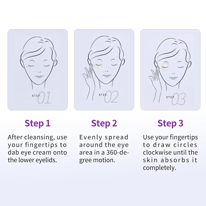 - 【HOW TO USE UNDER EYE CREAM】Apply a pea-sized amount on your ring fingers and gently pat around the eye area and brow bone, both morning and evening. The fast-absorbing formula works well alone or as a base under makeup. This hypoallergenic cream was designed for dramatic results but gentle enough for daily use