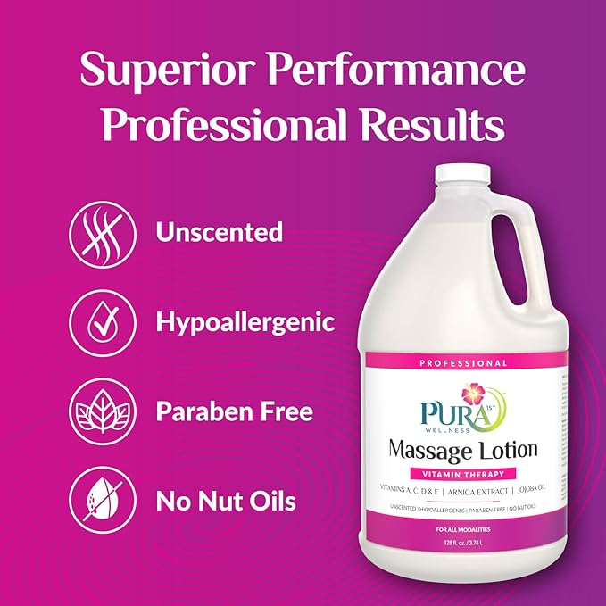 PURA Vitamin Therapy Massage Lotion, Massage Lotion Therapy Professional Deep Tissue Therapy, Pura Wellness Vitamin Therapy Lotion Unscented Lotion for Physical Therapy and Recovery, 128oz