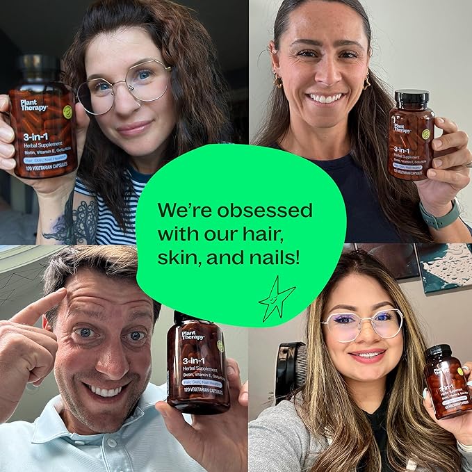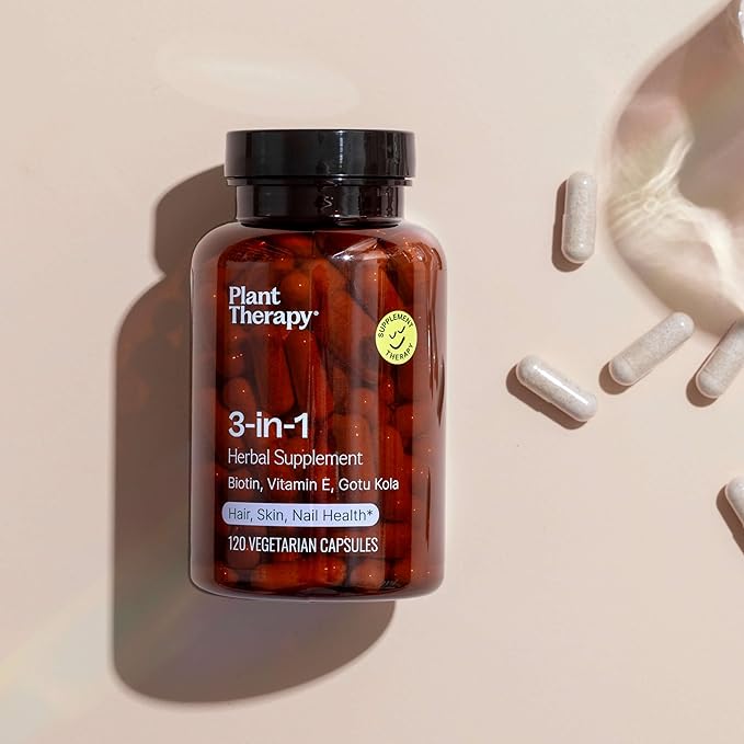 Plant Therapy 3-in-1 Herbal Supplement Capsules, Radiant Skin, Hair Growth, Strong Nails, Potent 3,500 mcg of Biotin, 120 Vegetarian Capsules (4 Month Supply), Made in The USA