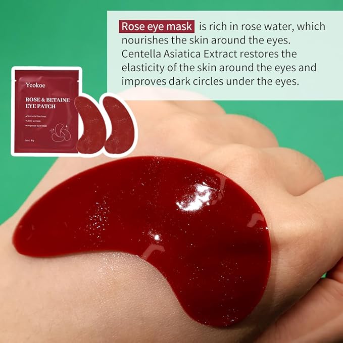- Highly effective:Yeokoe Aloe Vera eye mask helps soothe the area under the eyes,Hyaluronic acid in these under eye patches help to hydrate and moisturize your skin. Rose eye mask is rich in rose water, which nourishes the skin around the eyes. Retinol eye mask improves crow's feet at the corners of the eyes, tightens the skin, and revitalizes the skin around the eyes