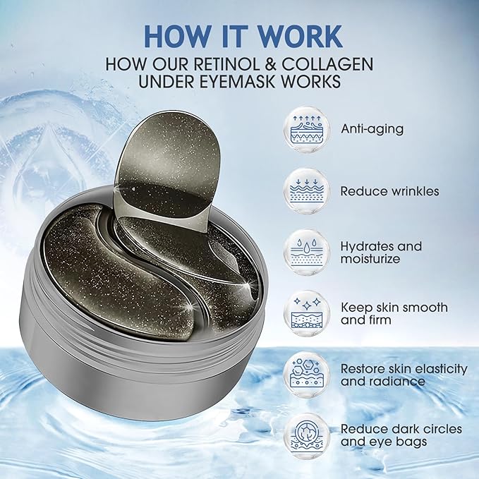 Under Eye Patches, 60 Pcs, Eye Mask for Puffy Eyes, Dark Circles, Eye Bags, Wrinkles, Collagen, Hyaluronic Acid, Castor Oil