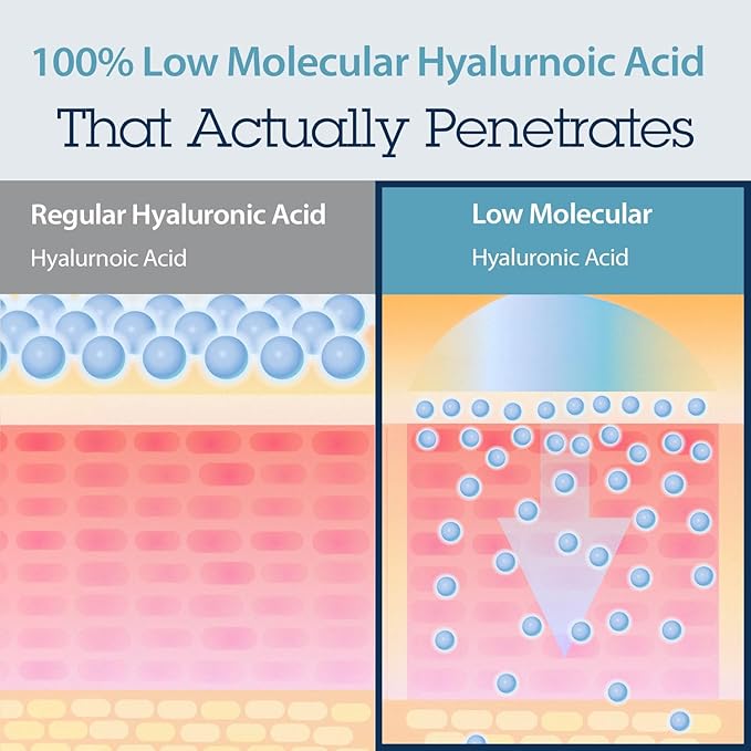 - 💧 2% Pure Hyaluronic Acid – Delivers deep hydration using only low molecular weight hyaluronic acid, clinically proven to penetrate deeper for visible plumping and moisture barrier support.