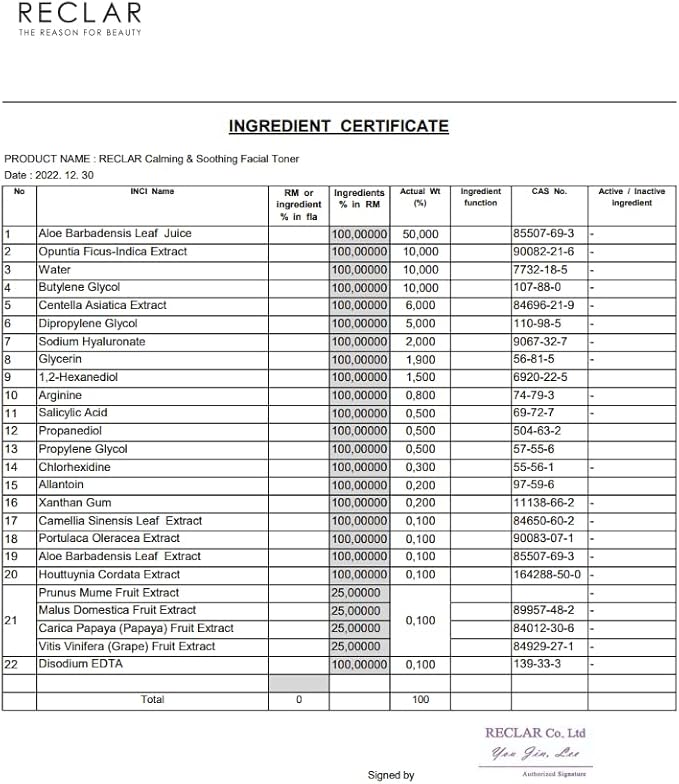 Calming & Soothing Facial Toner, 200ml, Korean Skincare, Aloe Vera, BHA, Centella Asiatica, Hyaluronic Acid, Allantoin, Hydrating, Clear