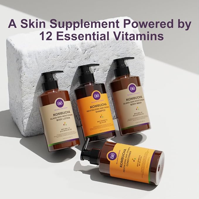 BALANCE YOUR BIOME Kombucha Glass-Skin Moisturizing Body Lotion, Fermented soybeans, barley, pear juice, pomegranate,12 types of Vitamin. pH balance, K-Beauty,16.9 fl.oz.500ml,No Silicone