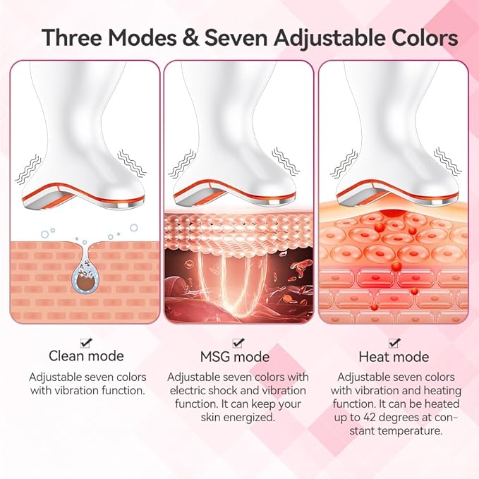 - The perfect skincare tool: Clean mode with vibration function. Hot mode with vibration heating function. MSG mode with vibration function