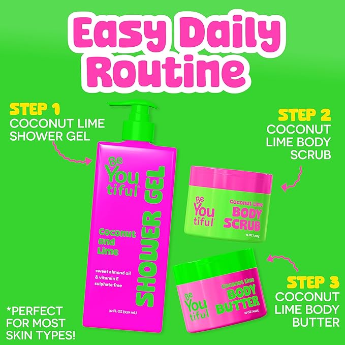 - Refreshing Coconut & Lime Scent: Enjoy the light, uplifting fragrance of coconut and lime that brings a touch of the tropics to your shower routine. The scent is natural and refreshing, leaving you feeling clean and revitalized all day long.