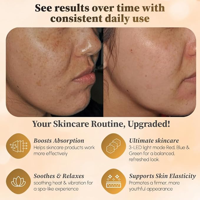 - Rejuvenation, Relaxation & Firmness: Transform your skincare routine with this facial massager, combining heat, vibration, and multi-color light modes. Designed to promote relaxation, enhance the look of skin firmness, and leave your skin feeling rejuvenated.
