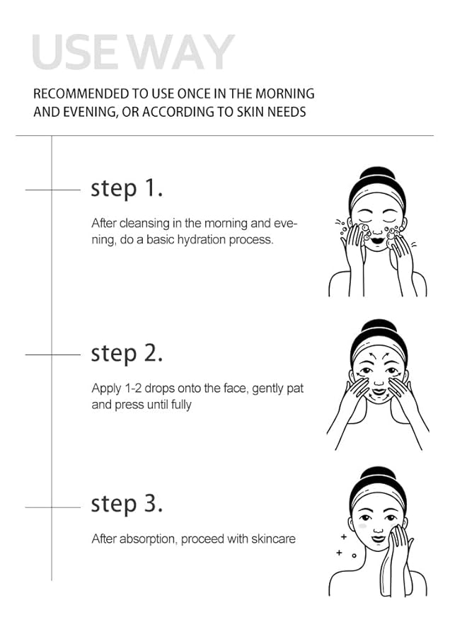 - 【Beauty Plan】Apply a few drops in the morning and at night before oils, creams, and moisturizers. For best results, apply to damp skin. Let absorb for 30 seconds before continuing with your routine
