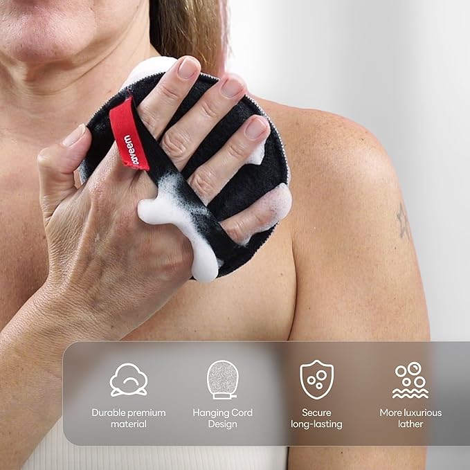 - [EASY TO USE] The body buffer for men and women features a convenient strap for easy handling. Its size fits comfortably on your hand, making it easy to use. The exfoliator for bath also retains its shape and size even with water, ensuring effortless cleaning