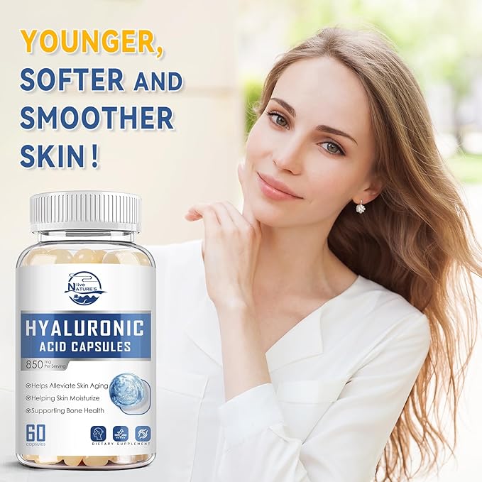 Nature's live Hyaluronic Acid Supplements, 850mg High Bioavailable Dietary Hyaluronic Acid Capsules, Double Strength Joint Lubrication, Skin Hydration, Hair & Nails Support, 60 Softgels, 2 Pack