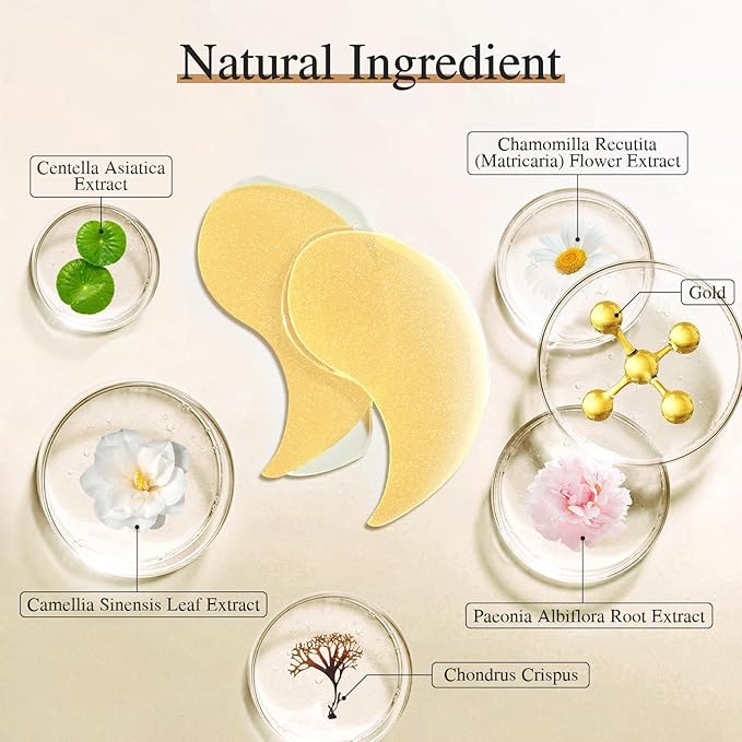 - 【Natural Ingredients】: Our under eye patches for eyes use with natural ingredients, the 4 different types eye mask main ingredients including Aqua, Glycerin, Collagen, Niacinamide, 24K Gold, Hyaluronic Acid, Rose Extract and Aloe Vera extract, help deeply repair the eye skin, help soothe the skin around the eyes, tighten your eye skin, remains hydrated and vibrant. The under eye patches through clinically tested by our researcher, continuous use can effectively reduces the appearance of dark cir
