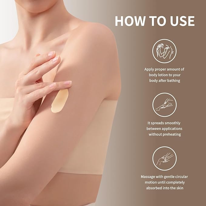 - 🌿"【Fast-Absorbing, Non-Greasy Formula】 Lightweight, butter-like texture melts instantly into skin without sticky residue. Perfect for daily use under clothing or before bedtime. Safe for all skin types, including sensitive skin."