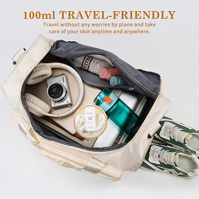 - TRAVEL-FRIENDLY: This Tallow Body Lotion is designed for travel convenience. It has a capacity of 100ml and is small and exquisite, making it easy to carry in a bag or suitcase. You can travel without the burden of flying and take care of your skin at any time. It is a considerate travel companion.