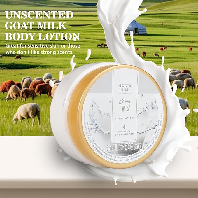 - UNSCENTED BODY LOTION: Our Goat Milk Body Lotion is fragrance-free, perfect for sensitive skin or those who don't like strong scents. Goat milk deeply moisturizes and nourishes your skin, leaving it soft and supple. Come try it and enjoy a luxurious skincare experience.