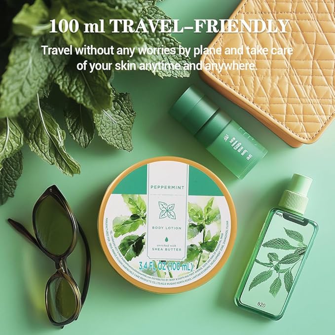- TRAVEL-FRIENDLY: This Peppermint Body Lotion is designed for travel convenience. It has a capacity of 100ml and is small and exquisite, making it easy to carry in a bag or suitcase. You can travel without the burden of flying and take care of your skin at any time. It is a considerate travel companion.