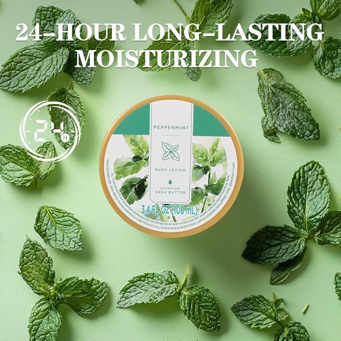 - 24-HOUR SUPER MOISTURIZING: Our Peppermint Body Lotion contains natural ingredients of Shea butter, which can deeply nourish and moisturize the skin, strengthen the skin barrier and replenish water, provide 24-hour strong moisturizing, and make the skin soft, smooth and natural.