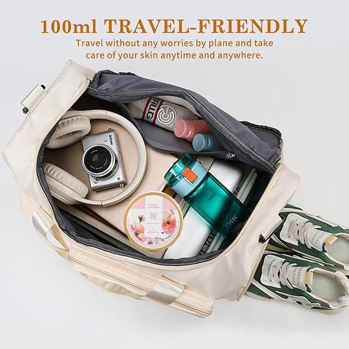 - TRAVEL-FRIENDLY: This Cherry Blossom Body Lotion is designed for travel convenience. It has a capacity of 100ml and is small and exquisite, making it easy to carry in a bag or suitcase. You can travel without the burden of flying and take care of your skin at any time. It is a considerate travel companion.