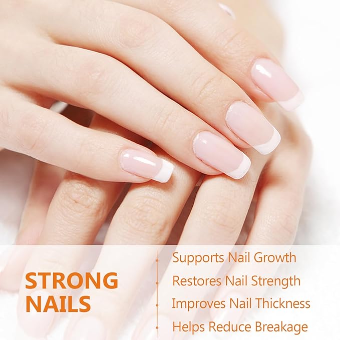- Support Skin, Nail and Hair Health: Each serving of biotin supplements provides 2500mcg biotin to nourish your natural beauty from within. This essential nutrient helps improve hair thickness, reduce brittle nails, and enhance skin's youthful glow
