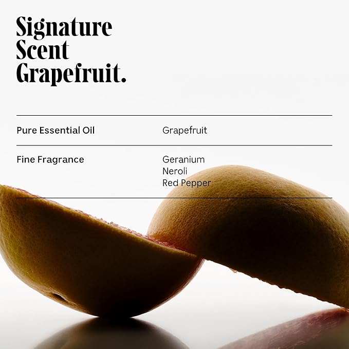 • Pure Grapefruit Oil is paired with fine fragrance notes of Geranium, Neroli and Red Pepper for a fresh experience.