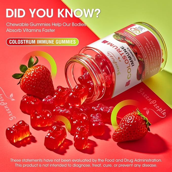 - SUGAR-FREE & NATURAL: All ingredients of GREENPEOPLE chewable colostrum gummies are extracted from fresh natural materials. Use plant pectin instead of gelatin to meet your needs for deliciousness and health.
