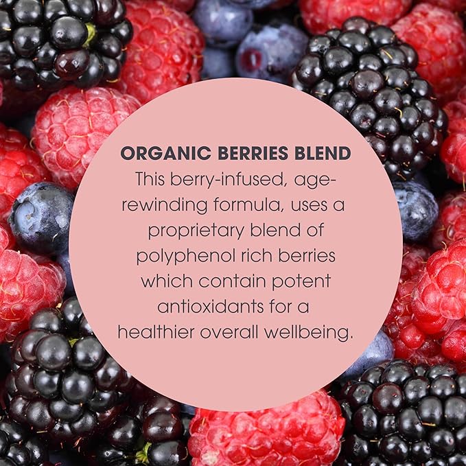 - ORGANIC BERRIES BLEND - This berry-infused, age-rewinding formula, uses a proprietary blend of polyphenol rich organic berries which contain potent antioxidants for a healthier overall wellbeing