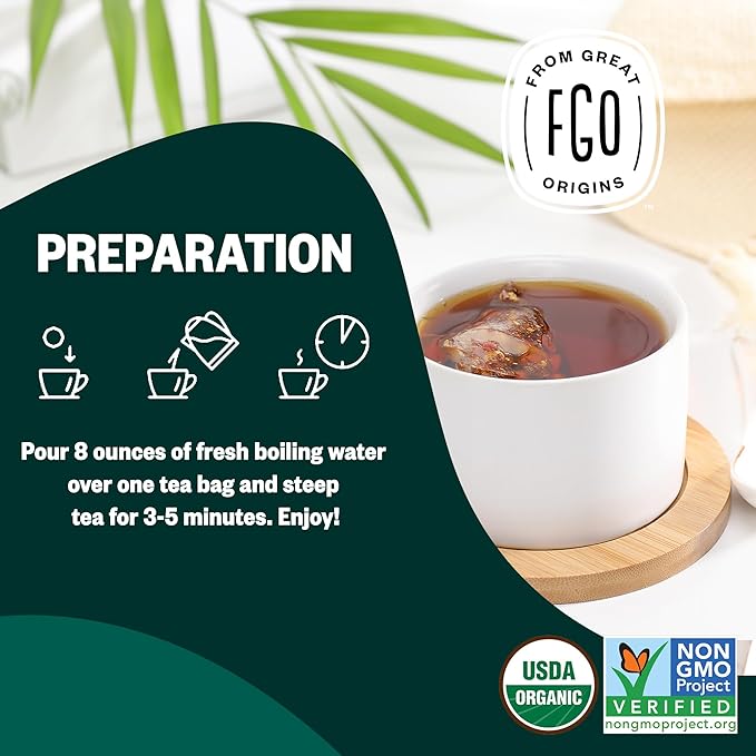 FGO Organic Elderberry Herbal Tea, 20 Count, Eco-Conscious Tea Bags, Caffeine Free, Resealable Bag, Packaging May Vary (Pack of 1)