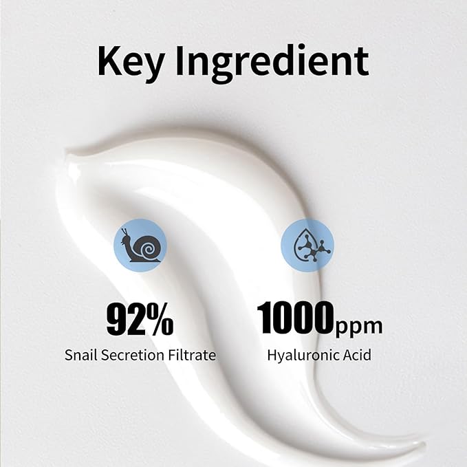 - STEP 3:Advanced Snail Mucin 92% Moisturizer (1.76 Oz) - lightweight and intense moisturizing essence absorbs very fast into the skin and maximizes skin elasticity.