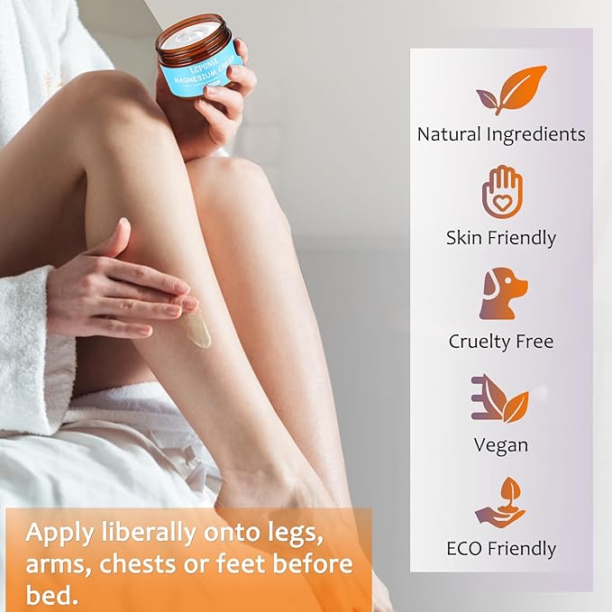 - Promotes Relaxation & Sleep: Our magnesium lotion for sleep delivers a soothing sensation to tense muscles, helping to ease discomfort and create a calming pre-bedtime ritual for deeper, more restful sleep.