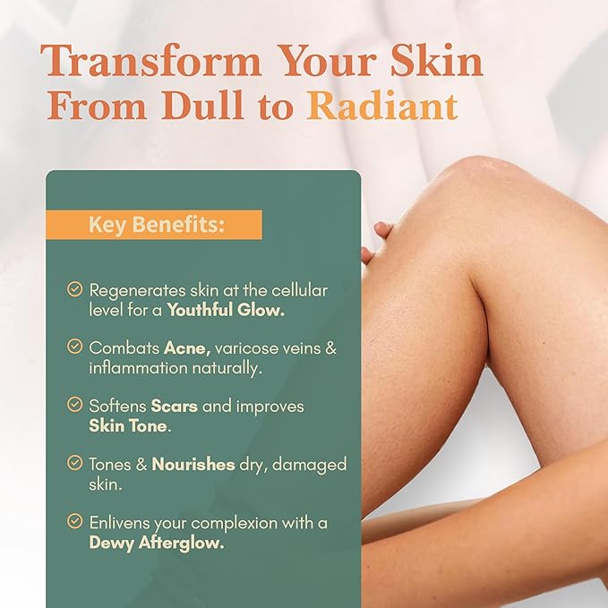 - Regenerates and Heals: Packed with potent, youth-activating plant oils, this all-natural body oil helps regenerate skin at the cellular level, combat acne, heal inflammation, and soften scars for a smooth, glowing complexion.