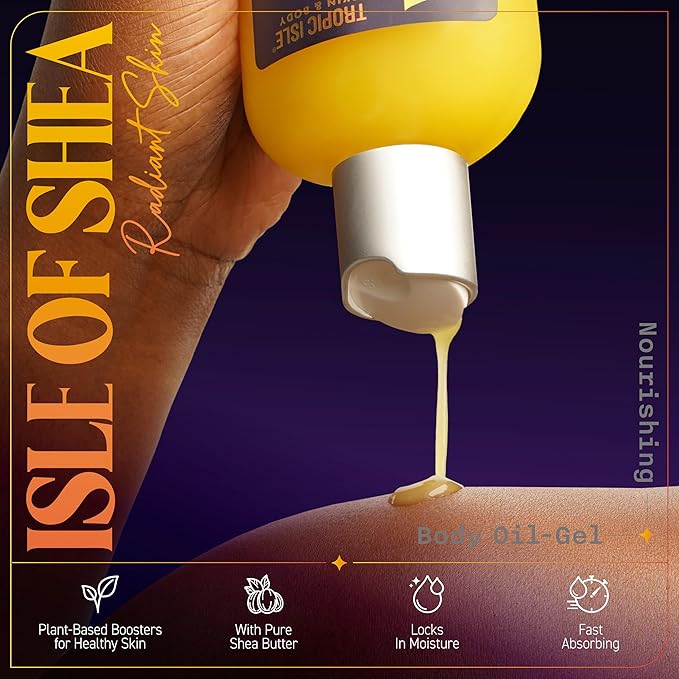 ISLE OF SHEA Radiant Skin Nourishing Body Oil-Gel Shea Butter and Jamaican Black Castor Oil, Ideal for Dry Skin, Cruelty Free, 8oz