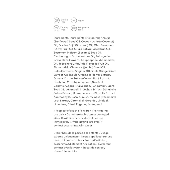 - SPECIAL OIL BLEND: Nourishes, moisturizes, softens, hydrates, and calms skin. Made up of Sunflower Oil, Coconut Oil, Jojoba Oil, Sesame Oil, Olive Oil, Rice Bran Oil, Carrot Oil, and Seabuckthorn Oil.