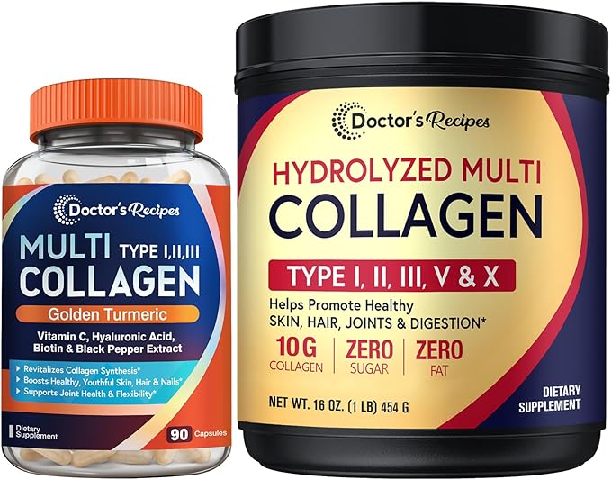 Doctor's Recipes Multi Collagen Peptides Powder 16oz and Multi Collagen Capsules 90 Caps