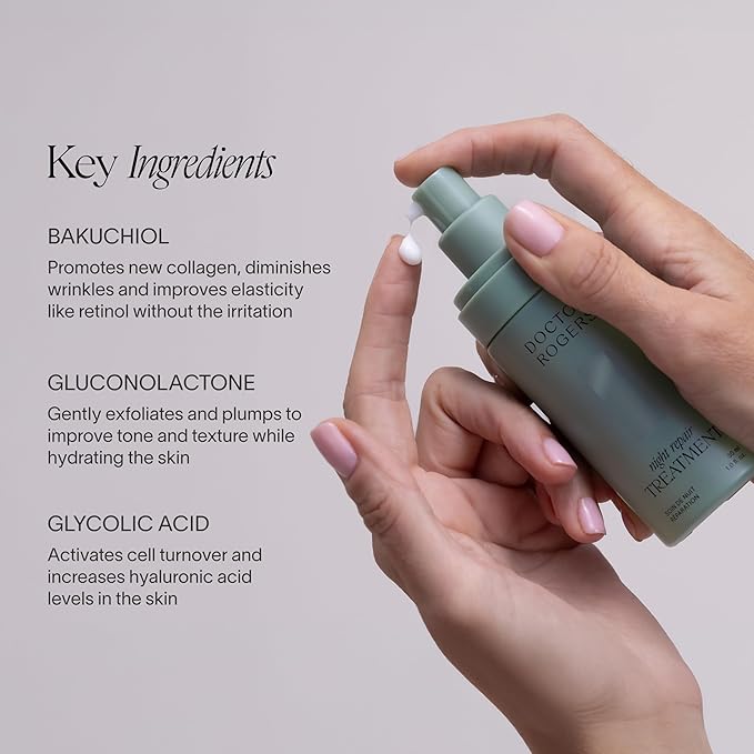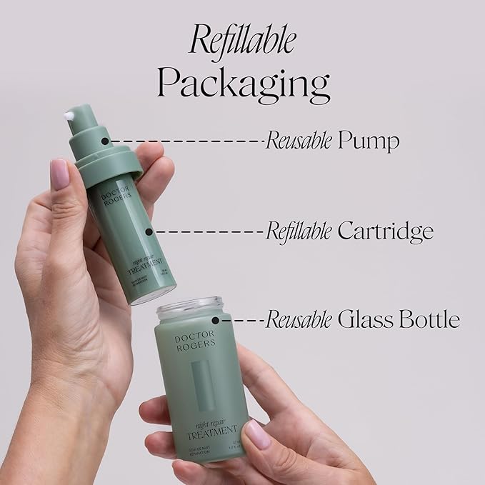 Doctor Rogers Night Repair Treatment REFILL. Restoring & Hydrating Anti-Aging Face Serum with Glycolic Acid, 1 Ounce (30 ml)