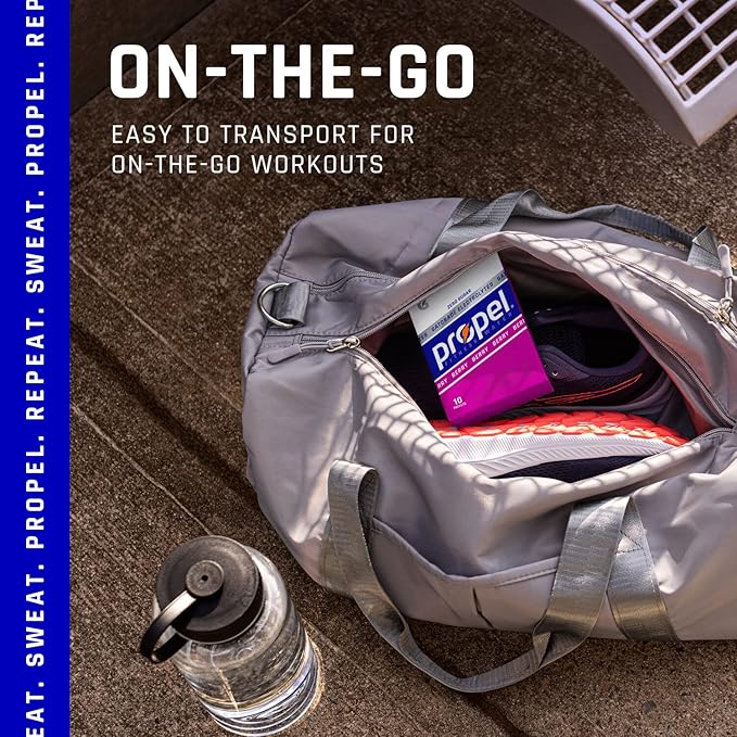 • Includes 30 sticks of Propel Powder Packets: (10) Grape, (10) Berry, & (10) Black Cherry flavors with Electrolytes, Vitamins and No Sugar