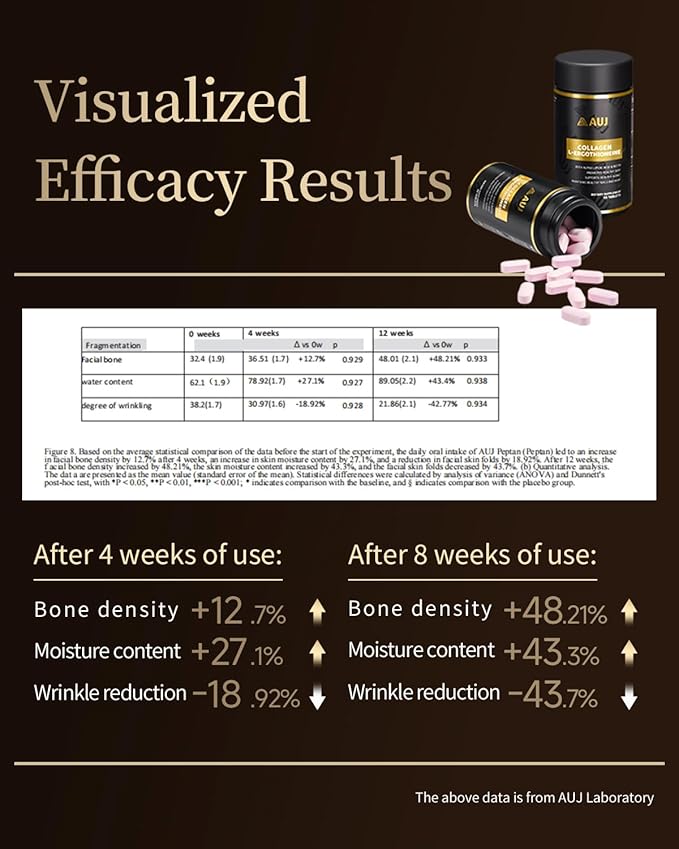 AUJ Multi-Active Collagen, 2300mg Peptan® Bovine Collagen Peptides Type I, II, III,3000mg Biotin, Ergothioneine (ET), Alpha Lipoic Acid, Nails Beauty Complex, for Women & Men, 45 Capsules